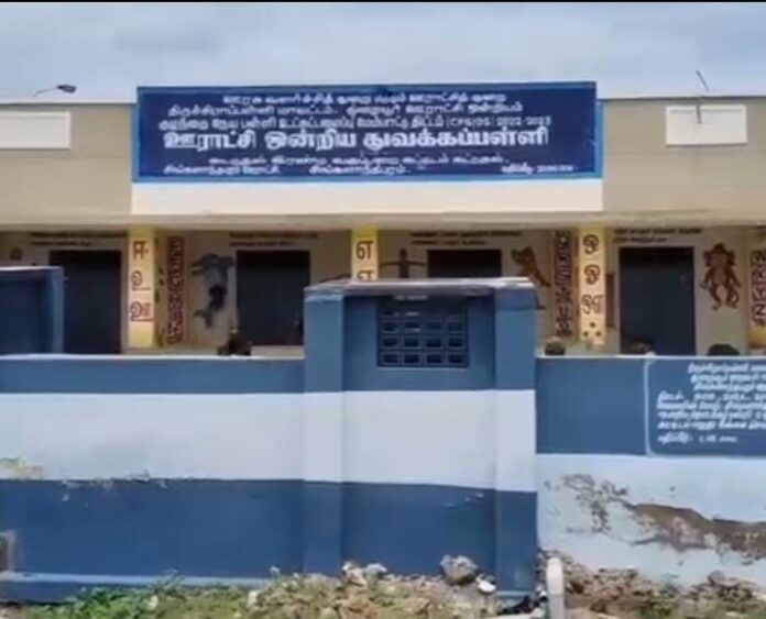 திருச்சி மாவட்டம் துறையூர் ஊராட்சி ஒன்றியம் சிங்களாந்தபுரம் ஊராட்சியில் 30.50 லட்சம் செலவில் கட்டப்பட்ட அரசு ஊராட்சி ஒன்றிய துவக்கப்பள்ளி கட்டிடத்தின் மேற்கூரை இடிந்து விழுந்து மாணவர்கள் அமரும் பெஞ் உள்ளிட்டவை சேதமடைந்தன.