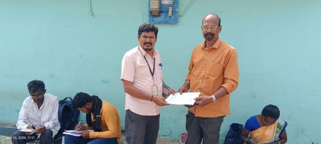 கிருஷ்ணகிரி மாவட்டம் ஓசூர் பகுதியில் சிறப்பு தீவிர திருத்த வாக்காளர் பட்டியல் படிவங்கள் பொதுமக்களுக்கு விநியோகிக்கப்பட்டு தற்பொழுது நிறைவு பெறும் கட்டத்தில் உள்ளது, அந்த வகையில் ஓசூர் மாநகராட்சி 17ஆவது வார்டு பகுதிக்கு உட்பட்ட தேசிங்கு நகர் பகுதிகளில் எஸ்.குமார் BLO தலைமையில் ஒவ்வொரு பகுதிகளாக சென்று பொதுமக்களை சந்தித்து சிறப்பு தீவிர திருத்த வாக்காளர் படிவங்களை விநியோகித்தும், பூர்த்தி செய்யப்பட்ட படிவங்களை பெற்றும் தங்களின் கடமைகளை சிறப்பாக செயல்படுத்தி வருகின்றனர்.