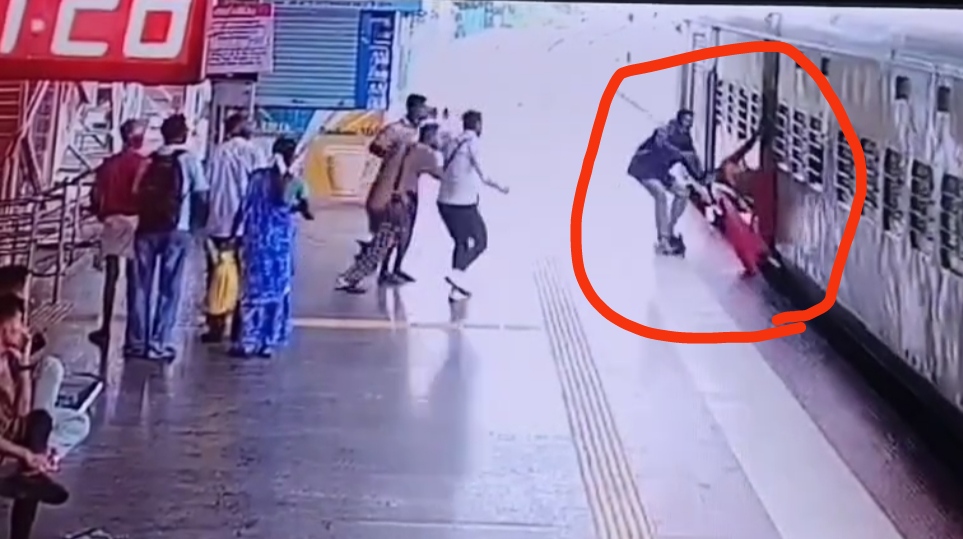 ரயில் நிலையத்தில் பொருத்தப்பட்டிருந்த சிசிடிவி கேமராவில் சம்பவம் முழுவதும் பதிவாகி இருந்த நிலையில் தற்போது பெண் பயணி உயிர் காப்பாற்றிய நொடிகளின் காணொளி சமூக வலைதளங்களில் வேகமாக பரவி வைரலாகி வருகின்றன.